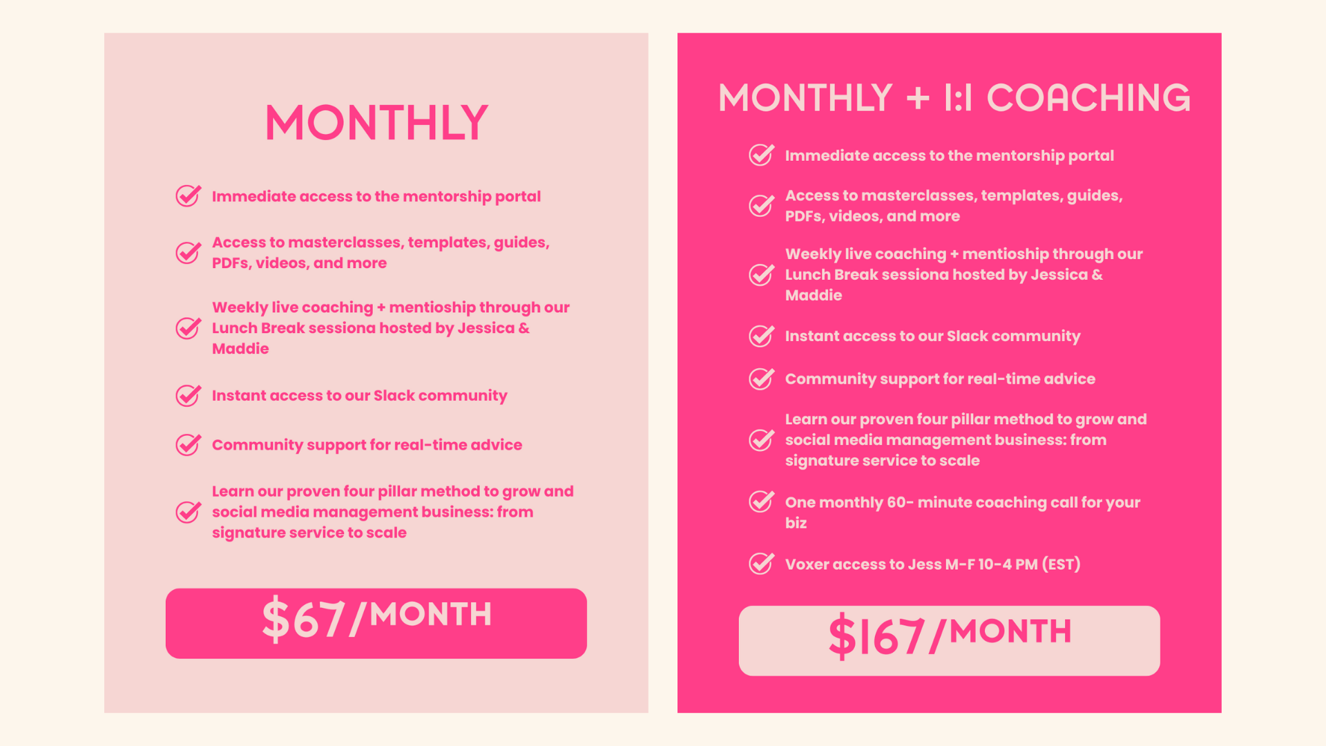 If you are stuck in any part of this process or just need a cheerleader to help you get through starting your business, let us introduce you to your business's new favorite tax write-off... the mentorship for social media managers!